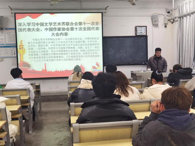 为了提高当代青少年文化自信心与民族自豪感,鼓励学生干部了解中国文艺新气象,发扬优秀中华文化,12月19日,色情网 于7#101合堂组织学生会全体人员学习习近平总书记在中国文联第十一次全国代表大会、中国作协第十次全国代表大会的讲话精神。此次活动由学生会执行主席孙冲主持。