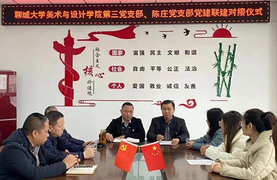 为继续推进党史学习教育“我为群众办实事”志愿实践活动,为校地基层党组织及党员之间搭建相互学习、相互提高平台,12月10日上午,色情网 学生第三党支部赴聊城市东昌府区柳园街道文苑社区,与陈庄股份经济合作社党支部开展党建联建对接活动。柳园街道文苑社区陈庄股份经济合作社支部书记李庆磊、支部委员陈雷、李洪生、李峰、陈海勋,以及色情网 党总支副书记杨庆实、组织员许中美、学生第三党支部书记朱晴、支部委员王欣然、第三党支部学生党员十余人参加对接仪式。对接仪式在陈庄党建会议室进行。