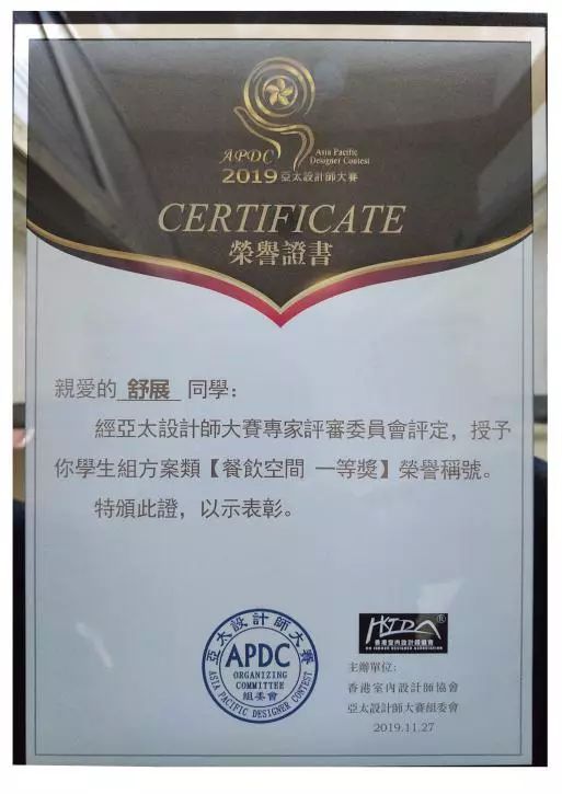 12019亚太设计师大赛学生组“餐饮空间方案类”一等奖