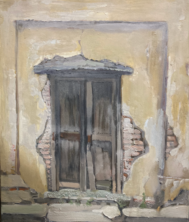 布面油画 综合材料 《旧时光-窗》 80*90cm