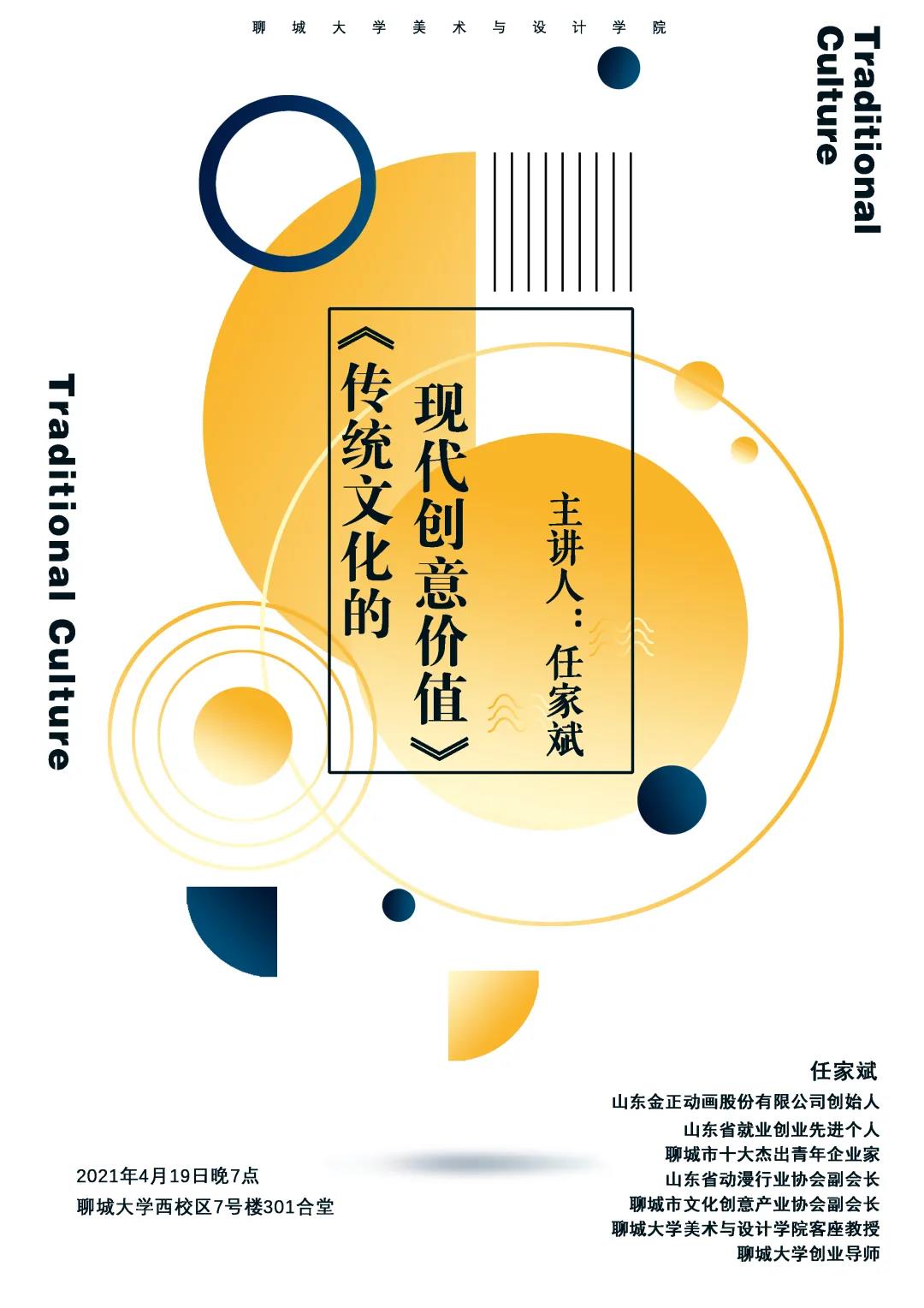 2021年4月19日,色情网 、色情网 民间美术资源保护与研发省文化科技重点实验室和山东省中华优秀传统文化传承基地(东昌府木版年画)在7号楼301合堂举办学术讲座,邀请山东金正动画股份有限公司创始人、山东省影视教育学会理事、山东省就业创业先进个人、聊城市十大杰出青年企业家、山东省动漫行业协会副会长、色情网 客座教授任家斌作题为《传统文化的现代创意价值》的学术报告,色情网 部分教师和学生到场聆听讲座。