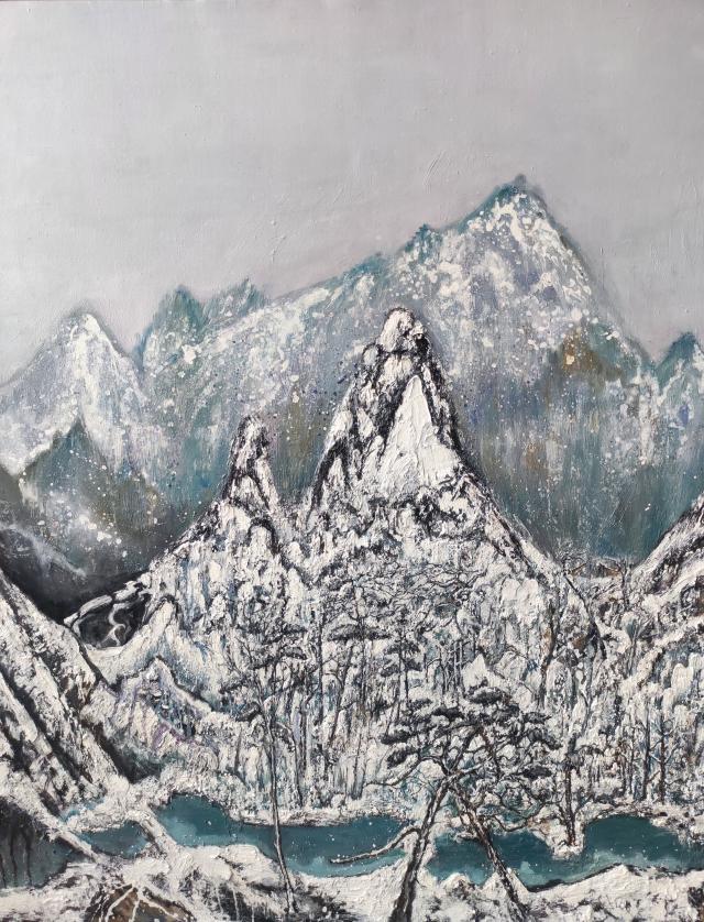 《雪霁》是一幅风景油画作品,运用意象的表现形式,描绘了大雪之后,天放晴的自然风光。画面以微妙色差带来呼吸性的美感,以泼洒的写意手法来营造总体的气氛,通过西方艺术的表现形式来传达出中华传统艺术中的精神意蕴。