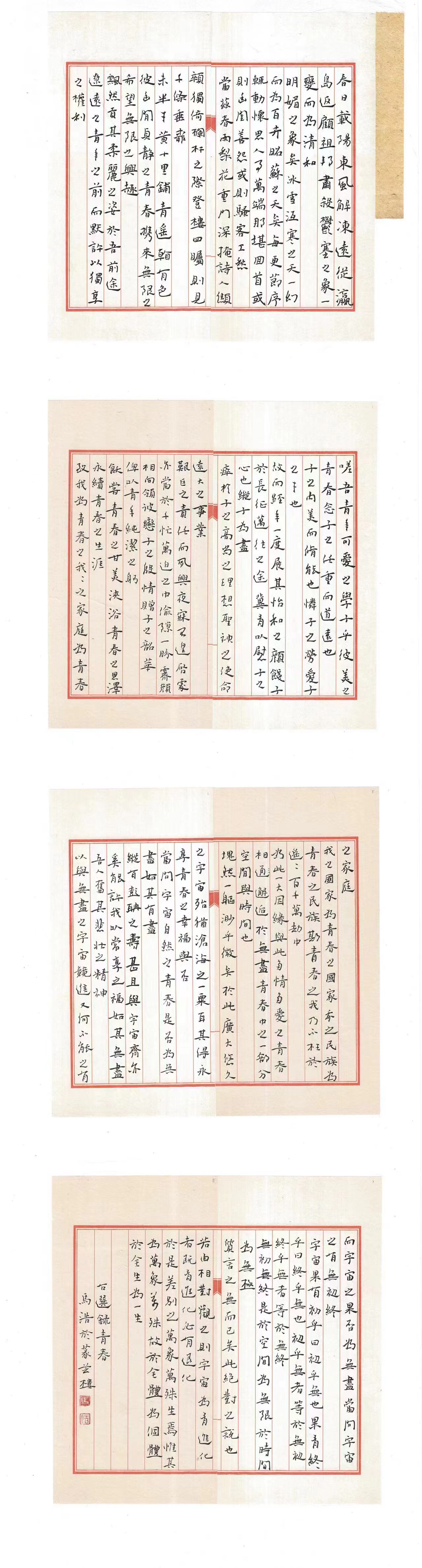 这幅作品内容是选录李大钊先生《青春》运用小楷创作,书写时掺杂行书笔意,显得灵动富有意趣。