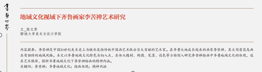 2024年7月论文《地域文化视域下齐鲁画家李苦禅艺术研究》发表于《书画世界》;