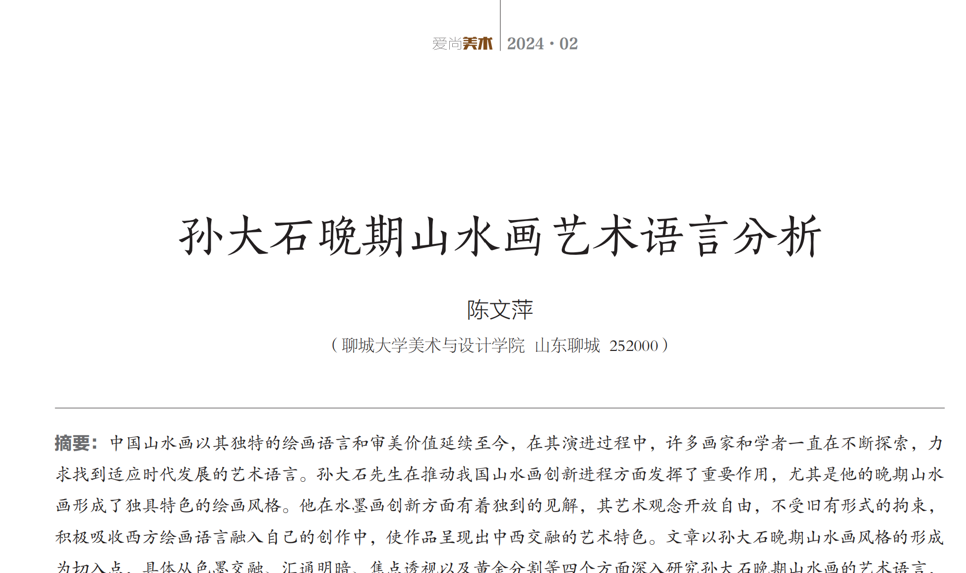 2024年2月论文《孙大石晚期山水画艺术语言分析》发表于《爱尚美术》;