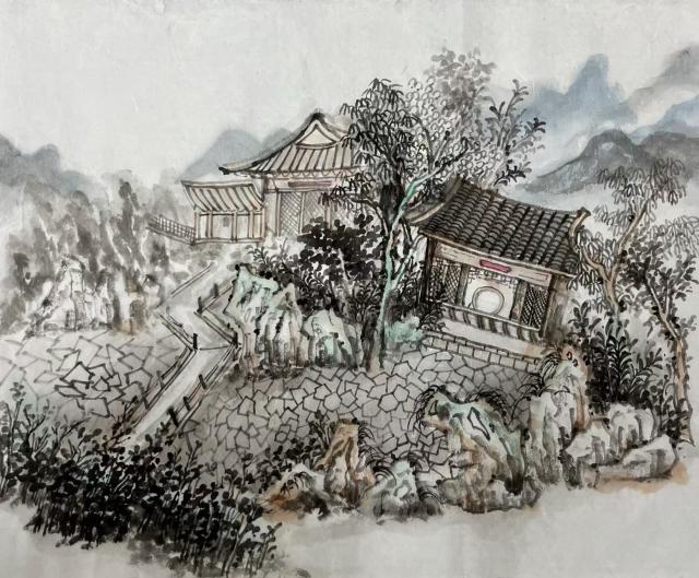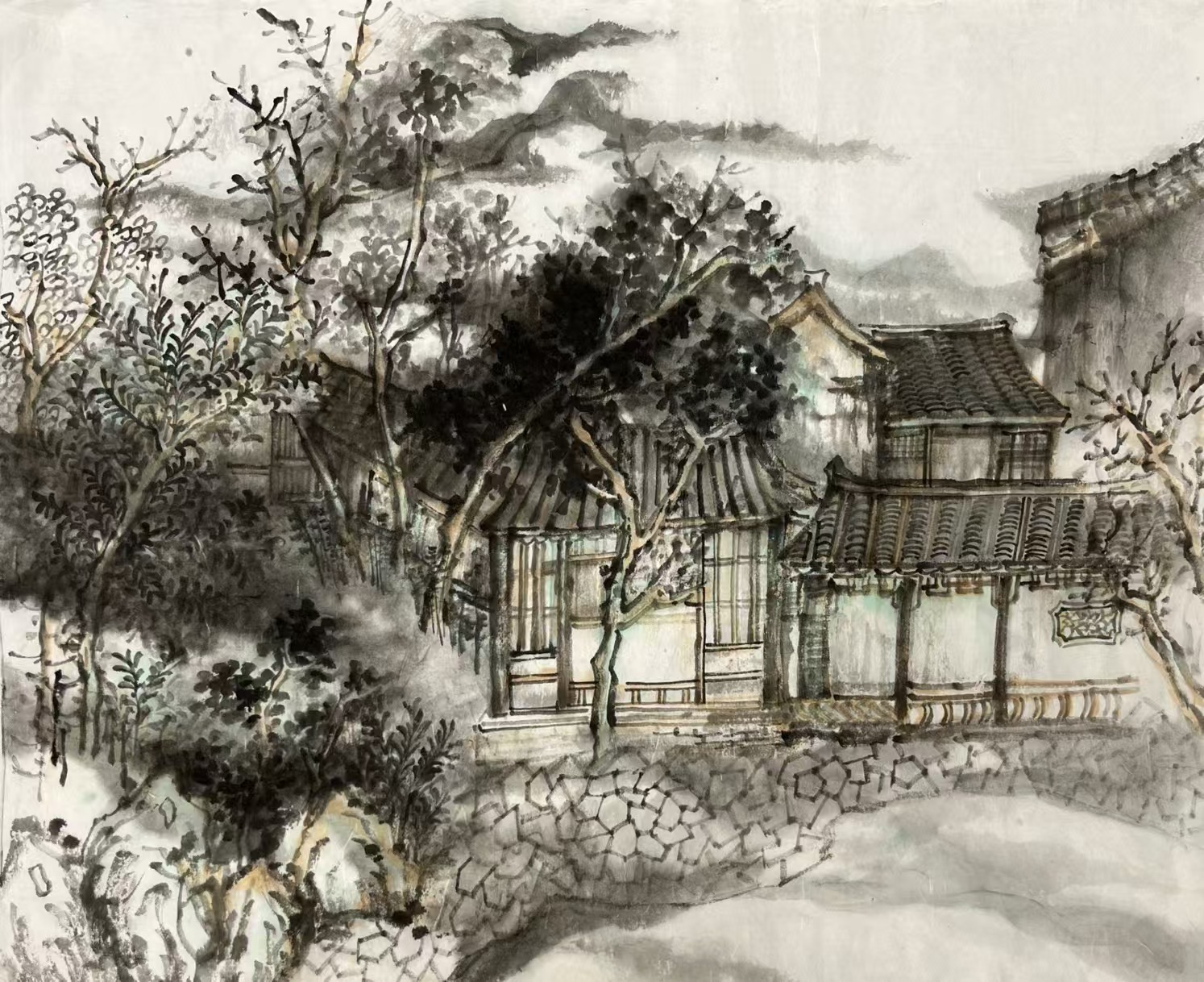 2023年4月作品《古巷一隅》入选聊城市“外师造化 中得心源”写生作品展;