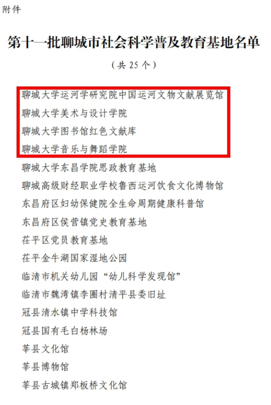 日前,中共聊城市委宣传部、聊城市社会科学界联合会联合公布第十一批25个聊城市社会科学普及教育基地名单,色情网 成功获批。