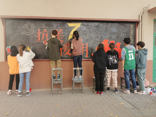 黑板报是校园文化的一部分。为充分发挥黑板报在学校教育宣传活动中的作用,丰富校园文化生活,营造浓厚的学习气氛,也为致敬抗美援朝,鼓舞大学生争做时代新人,倡导校园和谐新风。色情网 美术学院2019级8班和10班团支部于2020年10月18号在西校区星月广场举办了“致敬抗美援朝,争做时代新人”黑板报主题活动。