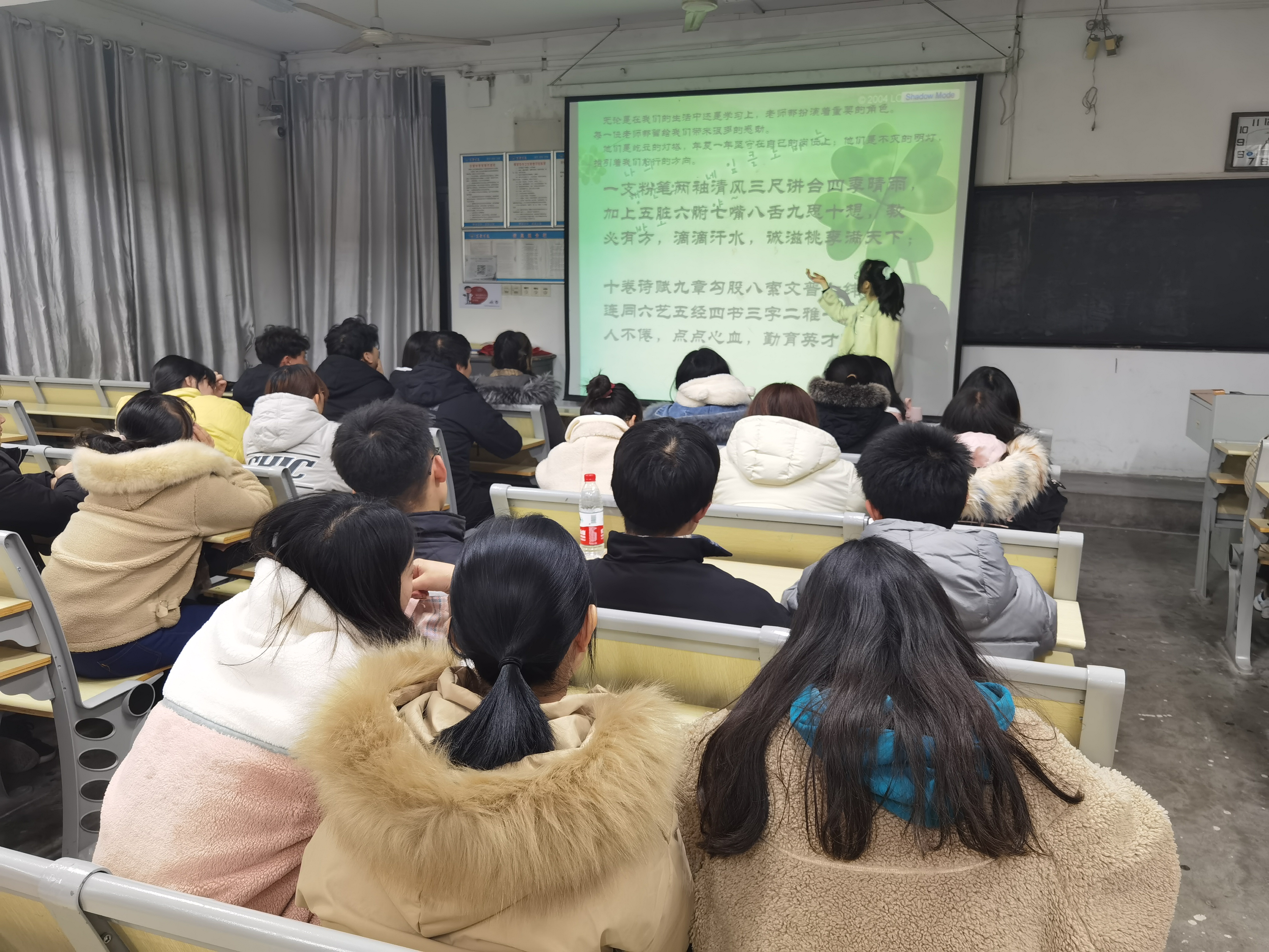 活动开始,负责人利用PPT讲解了感恩,紧扣“心怀感恩,与爱同行”的主题。随后,同学们积极参加围绕感恩这个主题进行演讲,没有长篇大论,古往今来的解释感恩,而是牢牢抓住最简单的词汇,表达最真挚的情感让我们的思绪飘入其中,静静的倾听着。活动过程中同学们有的感恩老师“借得大江千斛水,研为翰墨颂师恩”,有的感恩父母“谁言寸草心,报得三春晖”,有的感恩生活中帮助过自己的人“滴水之恩,当涌泉相报”。随着活动的深入进展,教室内气氛高涨,牵动着在场的每一位同学。人是需要感恩的,对于世间万物,心存感恩,就能像大海一样有自净能力,让心灵的潮水不再肆虐,感恩之心足以洗涤我们内心的狭隘与偏激,帮助我们度过痛苦和不顺,学会感恩便能与爱同行。