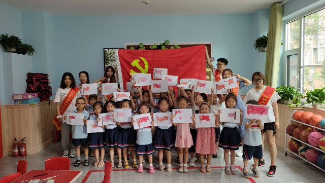 为帮助孩子们更好地了解党史,志愿者积极查阅书籍、收集影像,将党史知识转换成通俗易懂的小故事,和小孩子们一起回顾党的发展历程,分享党的光辉历史,引导小孩子们知党爱党,并采用绘画的方式调动孩子们的兴趣。志愿者为孩子们分发纸张、笔、油画棒等画画工具,在绘画过程中,孩子们放飞思想,大胆用色,尽情创意。志愿者则站在身旁,给孩子们提供足够的创作空间并恰当的进行引导,他们以纯洁的心灵、淳朴的感情和对真善美的感悟表达了对党的热爱。经过近一个小时的绘画,每个孩子都收获了一幅精美的作品,得到了志愿者和老师的表扬。志愿者还为小朋友们播放了红色革命歌曲,并与大家一起跟唱,共同领略革命精神,感悟革命情怀。
