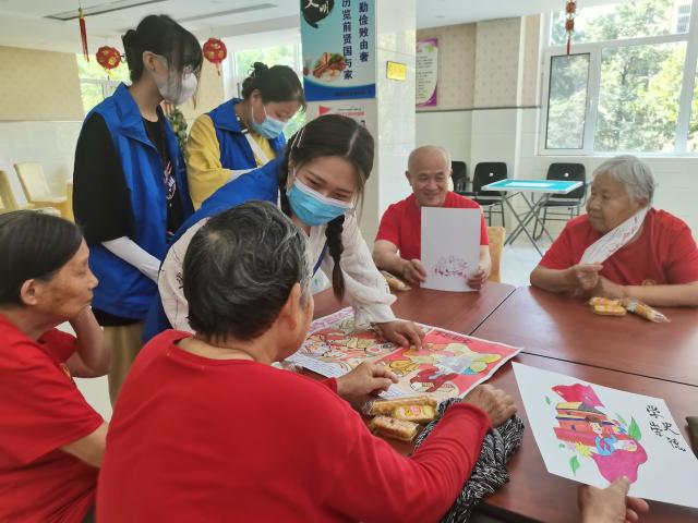 学党史、感党恩、跟党走。在工作人员的带领下,志愿者们来到了福利院进行宣讲工作,为老人们送上一堂堂接地气的党史宣讲课,用他们听得懂、乐意听的方式诠释党史故事和党史理论。在宣讲过程中,志愿者积极与老人们沟通交流,守在他们身边认真聆听,分享过往艰辛岁月,他们见证了国家从站起来、富起来到强起来,生活水平逐渐得到提高,使同学们不禁感同身受,感受到了祖国的强大。老人们以真挚朴实的语言讲述着自己身为青年一代时的故事和以往的奋斗历程,和志愿者们一起感叹美好生活来之不易,同学们也不禁对老人们肃然起敬。为更加调动活动氛围,志愿者们与老人们一同合唱《没有共产党就没有新中国》、《唱支山歌给党听》等红色歌曲,重温峥嵘岁月,也激发了同学们对传承革命先辈精神的坚定信心及同心共筑中国梦的美好心愿。活动结束后,志愿者纷纷表示以党史宣讲形式 更能引领广大群众回顾百年建党伟大征程,探索和感悟民族精神、时代精神,更好地传承红色基因,树立红色信仰,坚定理想信念,做一个有理想、有本领、有作为的社会主义建设者和接班人。