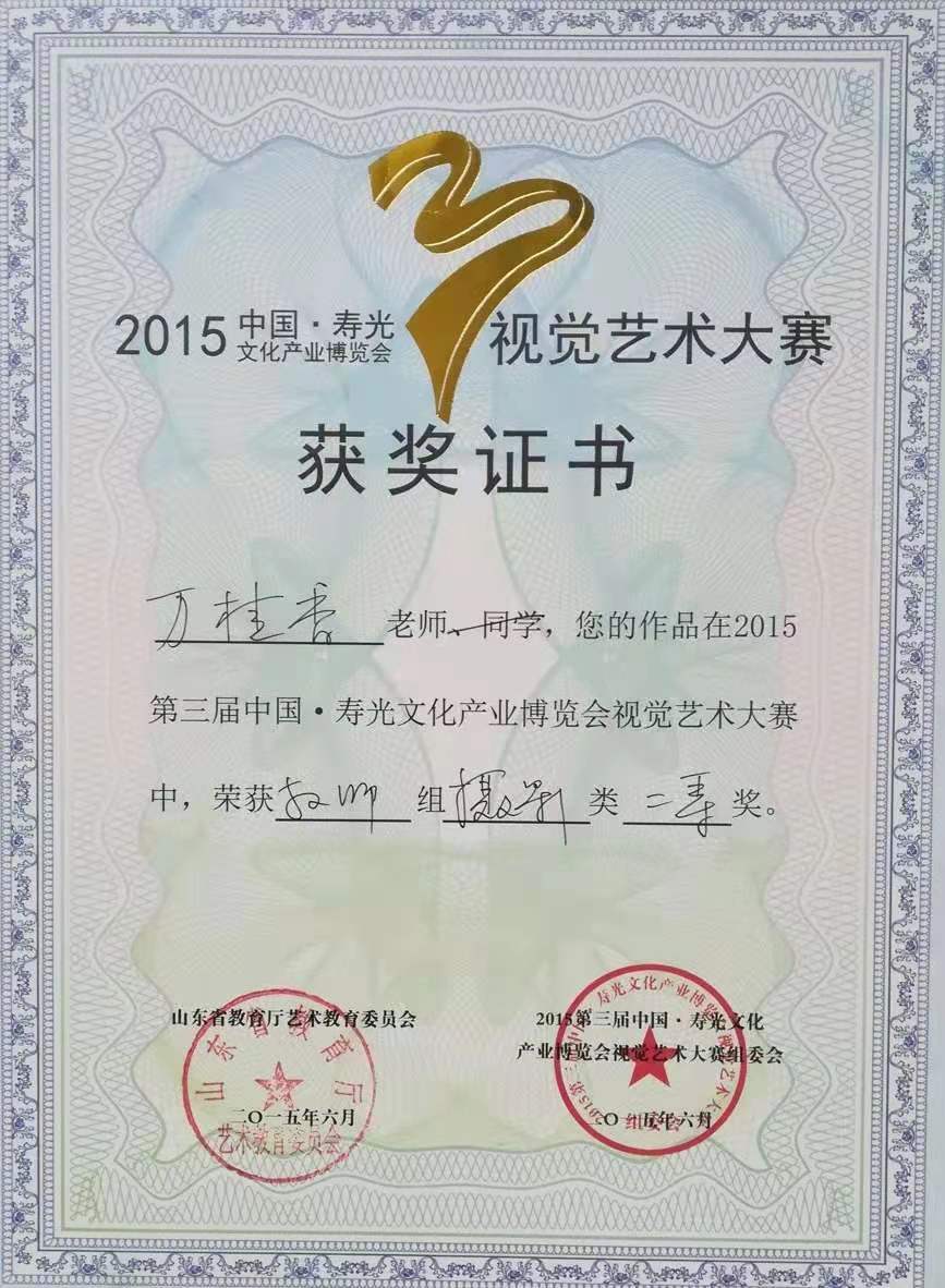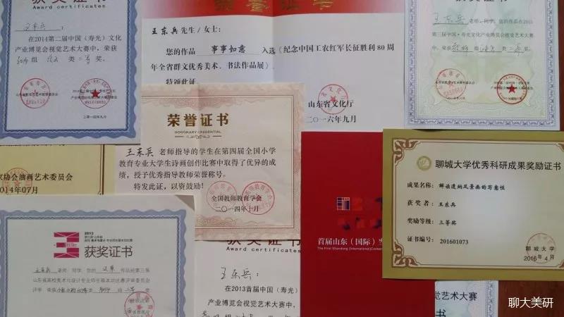 曾被评为山东省教委艺术教育委员会“十佳教师奖”、“山东美术创作荣誉奖”、校级“学科带头人”和“面向二十一世纪高层次人才培养工程对象”。2013年获批山东省教育厅社科科研立项《浪漫主义在中西绘画中的表现与研究》。中国美术家协会会员,秦中艺术交流中心高级顾问,北京神州艺龙文化交流有限公司高级画师,香港博雅艺苑文化发展有限公司签约画家。