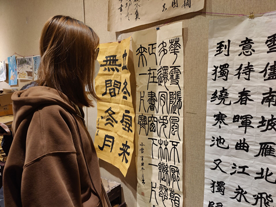 同学们积极参与征稿,精心打磨自己的作品,每一件作品都是同学们汗水与智慧的结晶,也展现了大家高超的专业素养。诸多的作品各有风采,有构思新颖的插画设计,有极具意境的风景绘画,有笔力遒劲的篆书作品,亦有潇洒飘逸的行草创作……形式多样,不胜枚举让大家大饱眼福。大家有序地在展厅里参观,兴致勃勃地在每件作品前驻足,与周围的同学讨论作品内容,交流创作经验。同学们各自发表自己对作品的理解,相互学习,开拓了自己的思路,提高了自己的审美能力。更有不少同学将自己感兴趣的作品拍照记录了下来,以作留念。同学们对这次活动非常满意,都表示会在以后的生活和创作中更加重视对传统文化的发扬与传承。