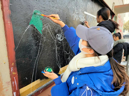 当天,该活动的负责人提前到达活动地点,准备好所需的画具及其他活动用品,以确保该活动的顺利完成。负责人向同学们讲解并互相讨论了黑板报的绘画步骤与合理分工。待同学们商量好各自的分工之后,对于这次迎接新年主题黑板报的“倾情”绘制也就正式开始了。活动中大家在板报绘制处各司其职,期间还时不时地传出一阵阵的欢声笑语,轻松和谐的气氛让看似枯燥的绘制行动充满了无限的乐趣。随着绘制进程的一点点推进,不少路过的同学们也纷纷加入了这个板报绘制的队伍,使这支欢乐的队伍越加庞大起来,在最后的收尾工作中,大家一起轻松愉快地完成了这项具有意义性的活动。