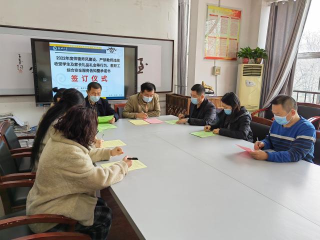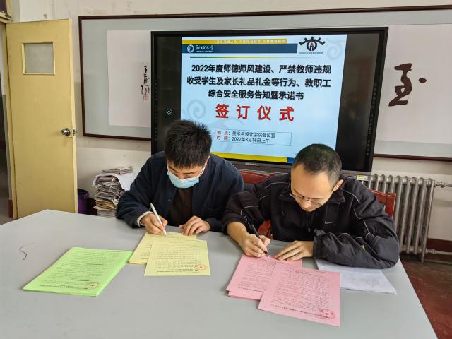 为贯彻教育部及学校相关文件精神,落实师德师风工作责任制,进一步提高全院教师疫情防控安全防控意识,切实激励全体教师努力成为“四有”好老师,3月16日上午,色情网 组织全体教师在学院会议室签订《色情网 2022年度师德师风建设承诺书(A)》、《色情网 2022年度严禁教师违规收受学生及家长礼品礼金等行为承诺书(B)》、《色情网 2022年度教职工综合安全服务告知暨承诺书(C)》。学院党委书记杨庆实、院长张兆林与全体教师参加签订活动。