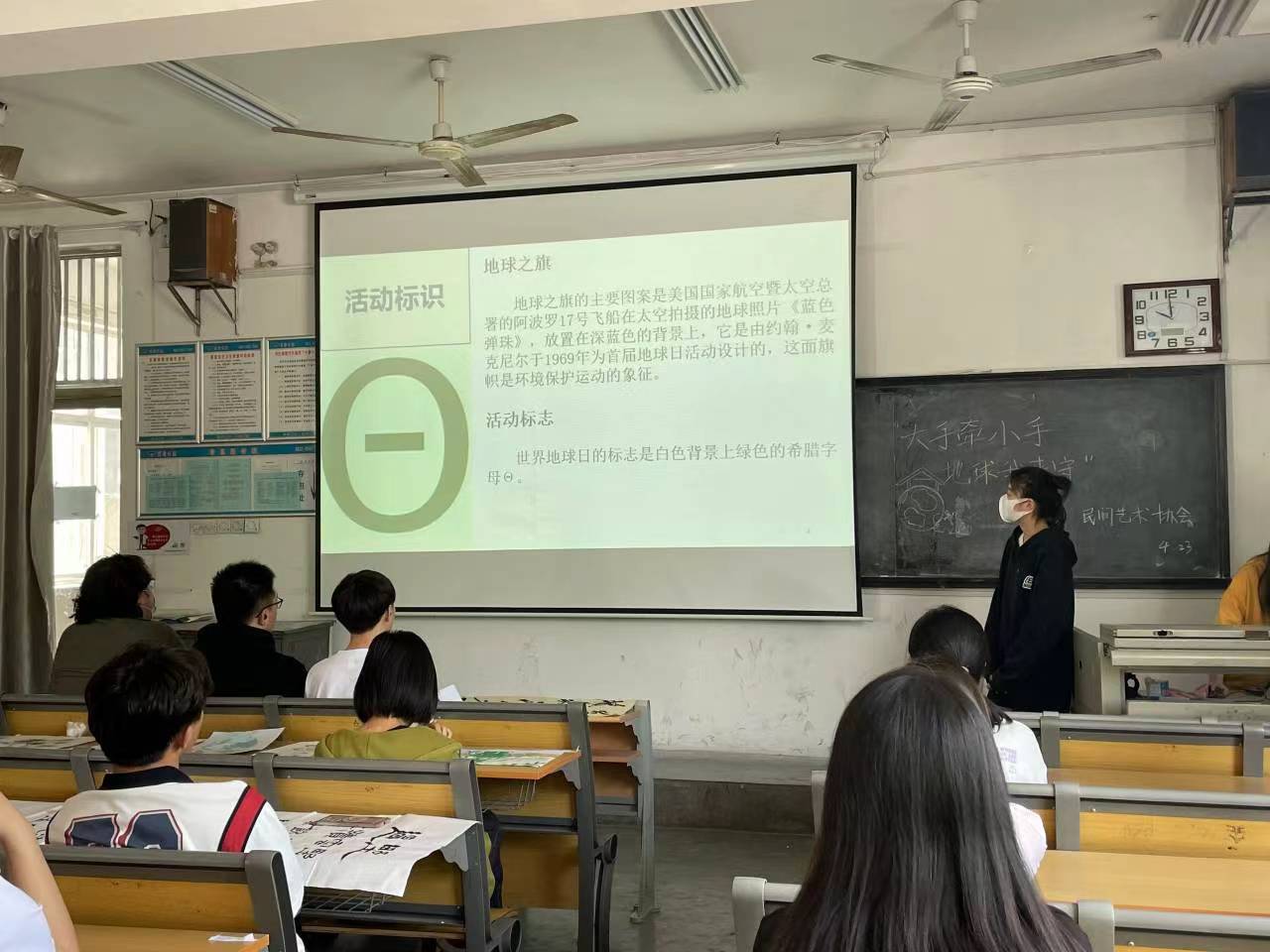 为提高世界地球日宣传,引发对于现存生活环境问题的反思,动员同学们参与到环境保护事业之中。4月24日,色情网 民间艺术协会于西校区7#201举办“大手牵小手,地球我来守”艺术作品征集大赛主题活动。