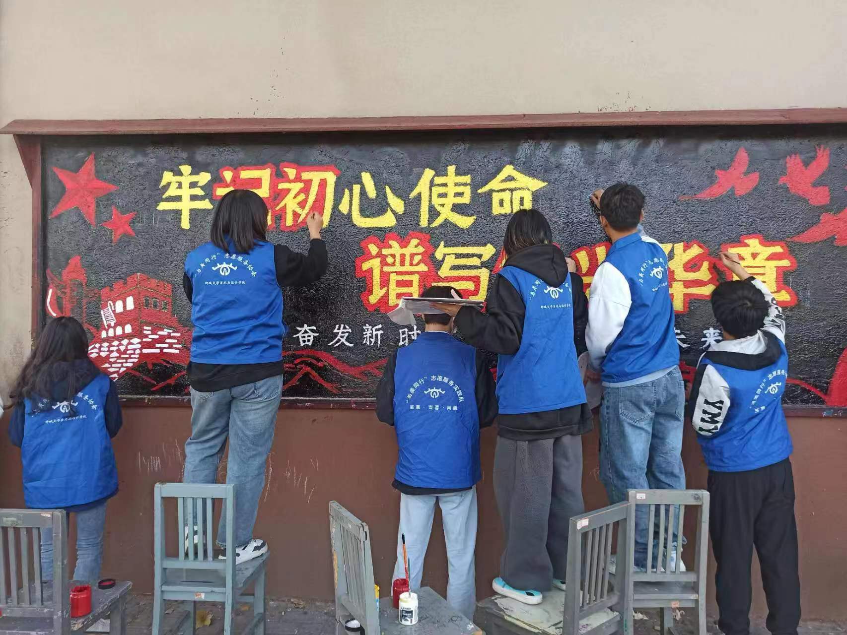 为激励同学们在奋斗中释放青春激情,追逐青春理想。色情网 “与美同行”志愿服务协会于11月9日开展了“牢记初心使命 谱写复兴华章”板报活动。