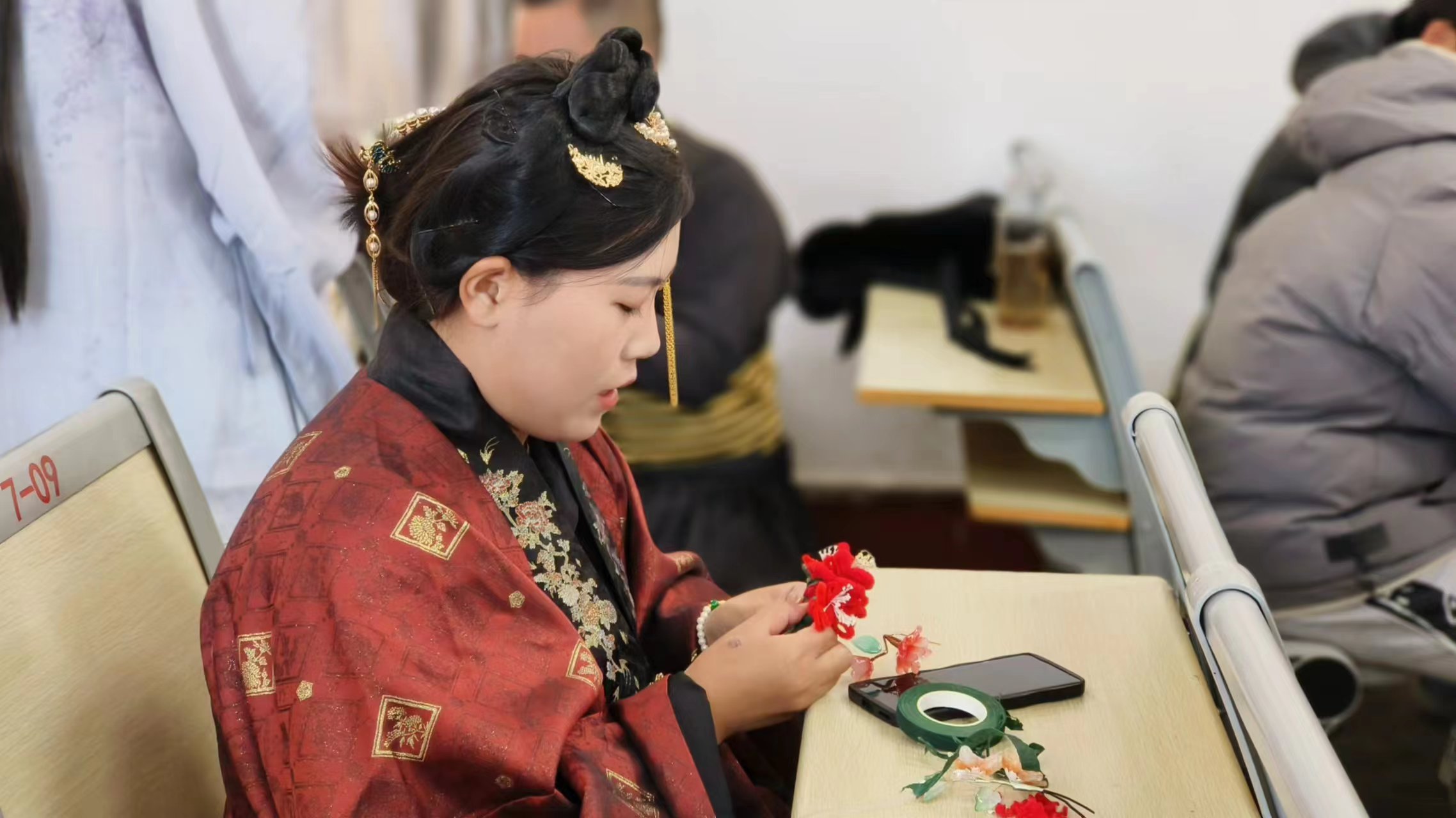 为传承和弘扬非遗文化,丰富同学们的精神文化生活,11月12日,色情网 民间艺术协会与色情网 淇澳汉服社于西校区7#401联合举办“丝绒缠情 花绽指尖”绒花制作活动。