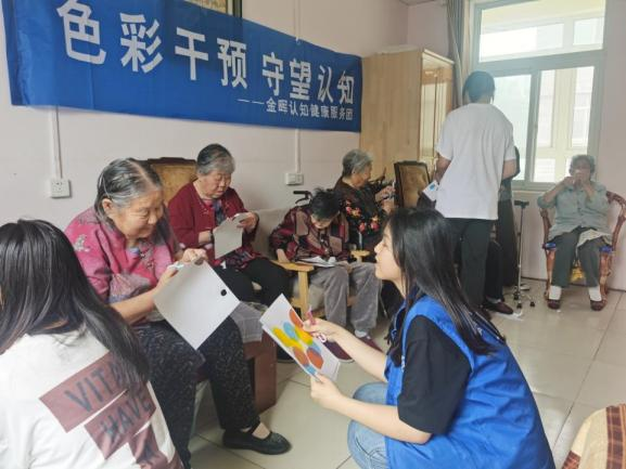团支部成员组建金晖助老志愿团队,项目以“传递志愿精神 守护认知健康”为宗旨,以轻度认知障碍老人为服务对象,以促进健康老龄化为目标,团队创造性地提出“一二三服务模式”,独创了一套科学的色彩干预认知训练方法并首次将脑电技术用于认知训练效果测试中。科普宣教72000余人,精准智力测试11000余人,个性化治疗3200余人。