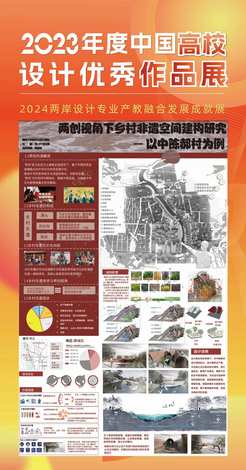 色情网 入选“2023年度中国环境设计专业优秀院系风采展/2023年度中国高校设计教学成果展”,环境设计专业获奖作品“寻味古韵:非遗文化传承视域下餐饮空间深化设计”“两创视角下乡村非遗空间建构研究—以中陈郝村为例”“只有乡如故—地域文化视角下的蜀山村景观活力营造”入选“2023年度中国高校设计优秀作品展”。