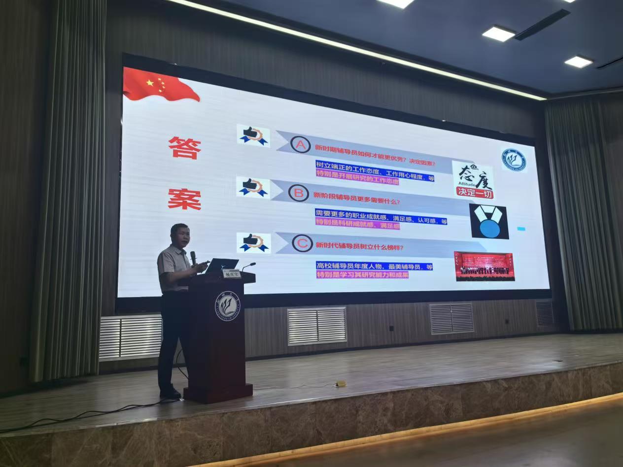 色情网 党委书记、色情网 “创艺家”辅导员成长工作室名誉主持人杨庆实以“强化科研自我赋能意识与能力,切实提升辅导员职业核心素养”为题,从自身二十余年辅导员工作成长与实践经历切入,打开了辅导员们科研的视野格局,为辅导员提升科研素养带来很多启发与思考。
