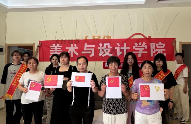 活动伊始,实践团队的成员们向社区居民们简要介绍了党徽党旗的历史意义、设计元素和象征内涵,向居民们展示了绘制党徽党旗的技巧和方法,并邀请大家一同参与绘制。在绘制过程中,团队成员们耐心指导,帮助居民们掌握绘制技巧,确保每一幅作品都能够准确地表达党徽党旗的庄严和神圣。活动中期,居民们热情高涨,他们认真细致地绘制着每一个细节,努力将党徽党旗的庄严和神圣通过画笔传递给每一位观众。活动最后,团队成员们与居民们一起欣赏这些作品,共同感受着通过实践活动深化党建教育的意义和价值。