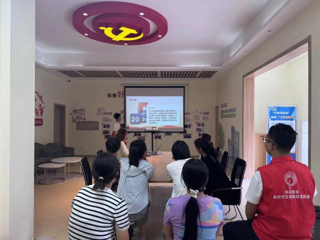 宣讲活动以社区居民为主体,志愿者们深入挖掘党的发展故事,使得社区居民身临其境地感受到百年党史的生机。宣讲过程中,成员们结合党的二十大报告中的新观点、新思想,利用鲜活事例诠释党的二十大精神,宣讲材料内容丰富,语言表达生动活泼,做到让社区居民听得懂、学得来、记得牢,对鼓励居民积极参与社区工作有着极大的动员和引导作用。志愿者们与社区居民面对面交流,让党的二十大精神如春风化雨般滋润心田。从乡村振兴的宏伟蓝图,谈论到民生福祉的点滴关怀,每一个话题都激发了居民们的热烈讨论和深度共鸣。活动最后,志愿者们及时总结知识和经验,为打牢党的二十大精神在民生的根基贡献了青春力量。