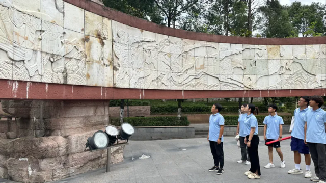 下午,志愿者们参观了红军山烈士陵园。庄严肃穆,碎金般的阳光透过茂密的枝叶印在烈士石碑上,折射出耀眼的光芒,纪念碑上“红军烈士永垂不朽”八个鎏金大字映入眼帘。美院实践团队成员怀着最诚挚的敬意,传承先辈遗志。