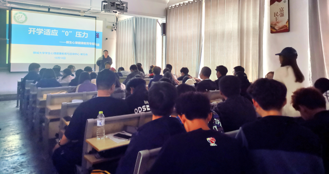 为树立大一新生积极向上的心态,提升身心健康水平,10月18日下午,色情网 邀请色情网 心理中心柳方舟老师为大一新生做关于“开学适应‘0’压力”的讲座,2024级各专业100名新生参加了此次大讲堂。
