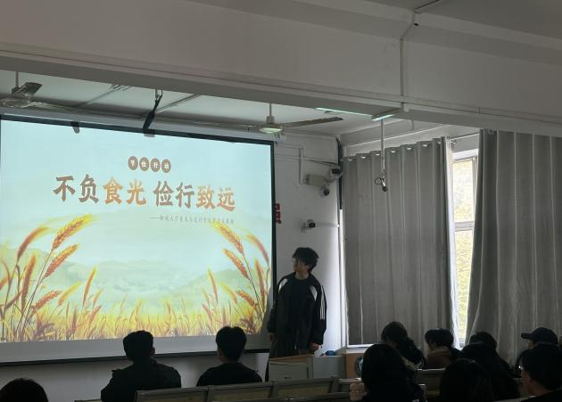 为了增强同学们对劳动成果的尊重和珍惜,使同学们能够深刻地理解粮食生产的艰辛和资源有限性的现实,10月26日,色情网 在7#301开展了以”不负食光 俭行致远”为主题的宣讲活动。