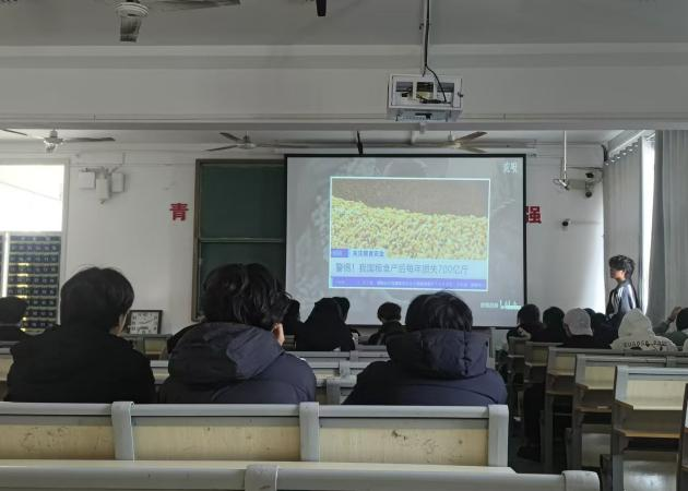 在宣讲活动开始前,负责人积极进行宣传,向同学们详细说明和阐释活动的目的。当活动正式开始时,负责人通过播放短片来使同学们更好的了解目前世界的粮食安全现状,激发同学们的思考并提高参与热情。宣讲内容主要围绕世界与中国的粮食现状,目前粮食安全威胁以及影响粮食安全的因素来展开深入讨论。在宣讲过程中,负责人还讲述了应对粮食危机应当如何做,倡导同学们节约粮食,以实际行动来保护粮食安全。最终活动在热烈的氛围中圆满结束。