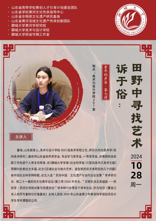 10月28日,2023级研究生董琦为2021级部分本科生作题为《诉与俗:田野中寻找艺术》的学术分享。