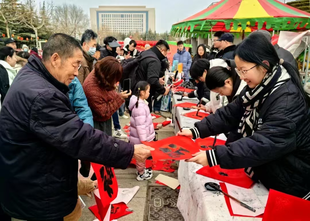 为了传承中华优秀传统文化,向社区传递新年祝福。1月27日,色情网 易班工作站赴潍坊高密市文体公园举办“墨香四溢迎新春,福字添彩年味浓”社会实践活动。