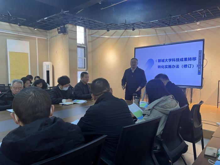 为深入对科技成果转化政策的理解,充分调动教师开展科技成果转移转化的积极性,色情网 于2025年2月16日邀请融合发展处处长丛振解读科技成果转化实施办法,色情网 党委书记杨庆实,院长张兆林,副院长史秀娜、王青嵩及全体教工参加此次会议。