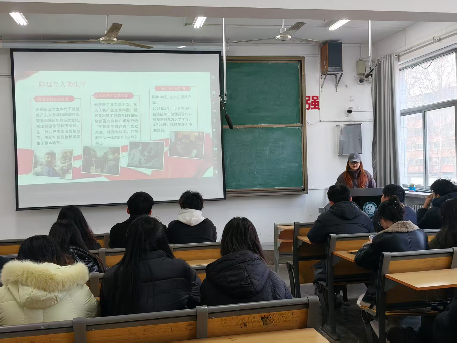 2025年2月20日下午四点半,色情网 学生党员在7号教学楼201合堂举行“四点半”微党课(2025年第1期│总89期),本次党课以“英雄楷模故事”为主题,讲述了革命先驱陈延年的生平事迹、英雄壮举和后世评价。本次微党课由研究生党支部第十党小组段梦瑶主持。