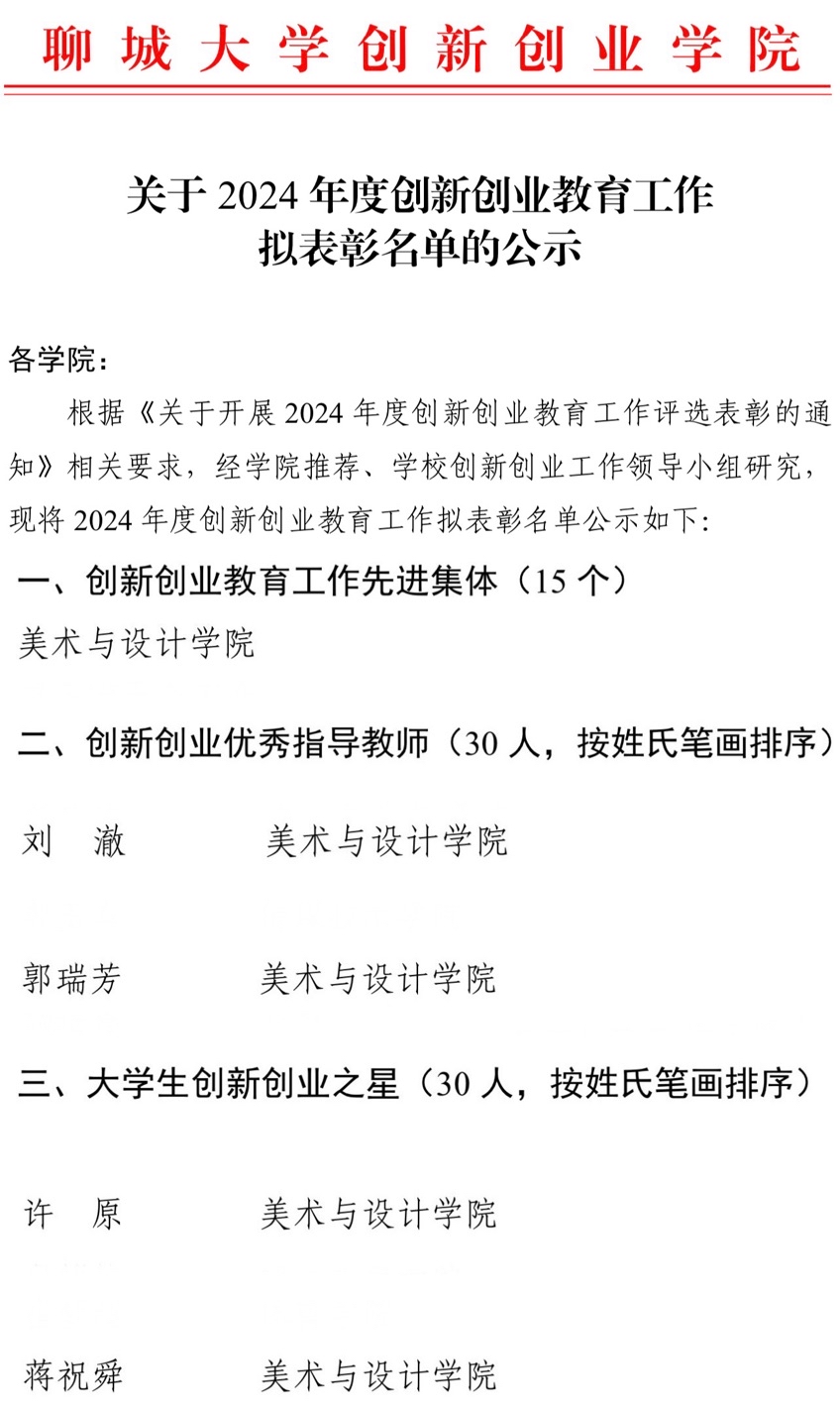 喜报:色情网 在2024年度创新创业教育工作中荣获多项表彰 作者:谢文涛 来源:色情网 发布时间:2025-03-25 阅读次数: 色情网 在2024年度创新创业教育工作中取得优异成绩,学院获得创新创业教育工作先进集体,刘澈老师、郭瑞芳老师荣获“2024年色情网 创新创业优秀指导教师”称号,学生许原、蒋祝舜荣获“2024年色情网 大学生创新创业之星”称号。 (审核 孔德滕)