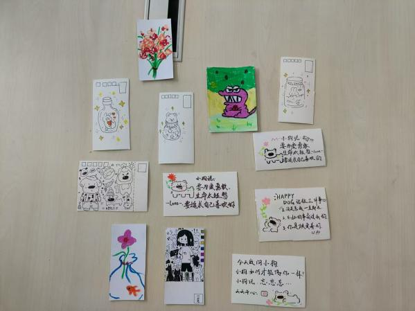活动伊始,主持人率先讲述此次活动的目的与活动内容,鼓励大家通过绘画表达情感,释放压力,并引导大家进行自己的绘画思考。接着,主持人向大家分发了彩笔、明信片等绘画工具,并在PPT上展示可参考的绘画图案。随后,同学们开始创作。部分同学先静坐思考,构思画面;部分同学则直接动笔,将灵感快速呈现。大家想法各异,充分发挥创造力,运用自身动手能力进行创作。绘制过程中,同学们相互交流创作思路,分享经验。主持人在现场巡回,为有需要的同学提供帮助和指导,保障活动顺利进行。经过1小时创作,同学们完成作品。这些明信片风格多样,展现出同学们不同的内心世界。主持人收集同学们的创意作品,并对活动做出总结。