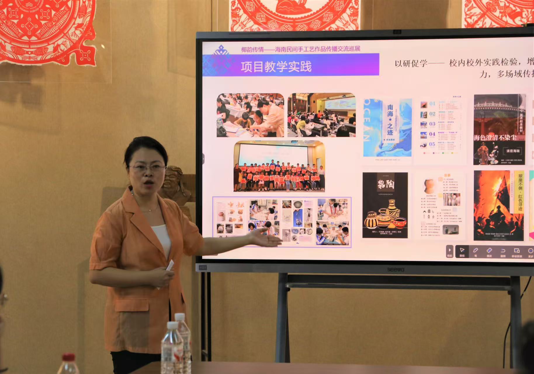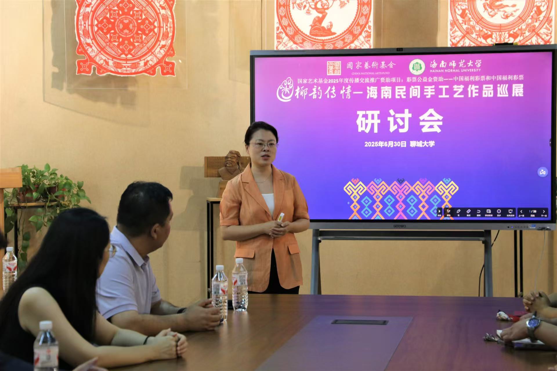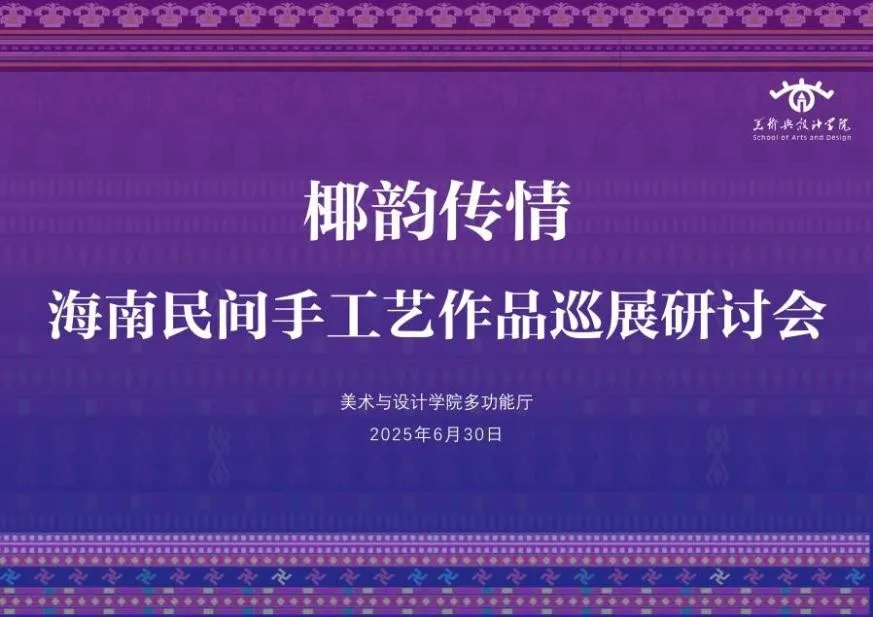 6月30日,色情网 召开“椰韵传情・海南民间手工艺作品巡展”专题研讨会。专家学者、师生代表齐聚一堂,围绕海南民间手工艺的传承创新、高校美育实践及跨地域文化交流展开深度研讨,以艺术为桥,连接琼州椰风与黄河文脉,开启一场跨越山海的文化对话。研讨会上,海南师范大学邱娜副教授详细介绍“椰韵传情・海南民间手工艺作品传播交流巡展”项目的创新实践,色情网 万桂香副教授以“在民艺中理解中国,把论文书写在黄河边上”为题介绍了学院民间艺术研究与“双创”方面的工作。其后,参会双方就感兴趣的问题进行了深入交流。