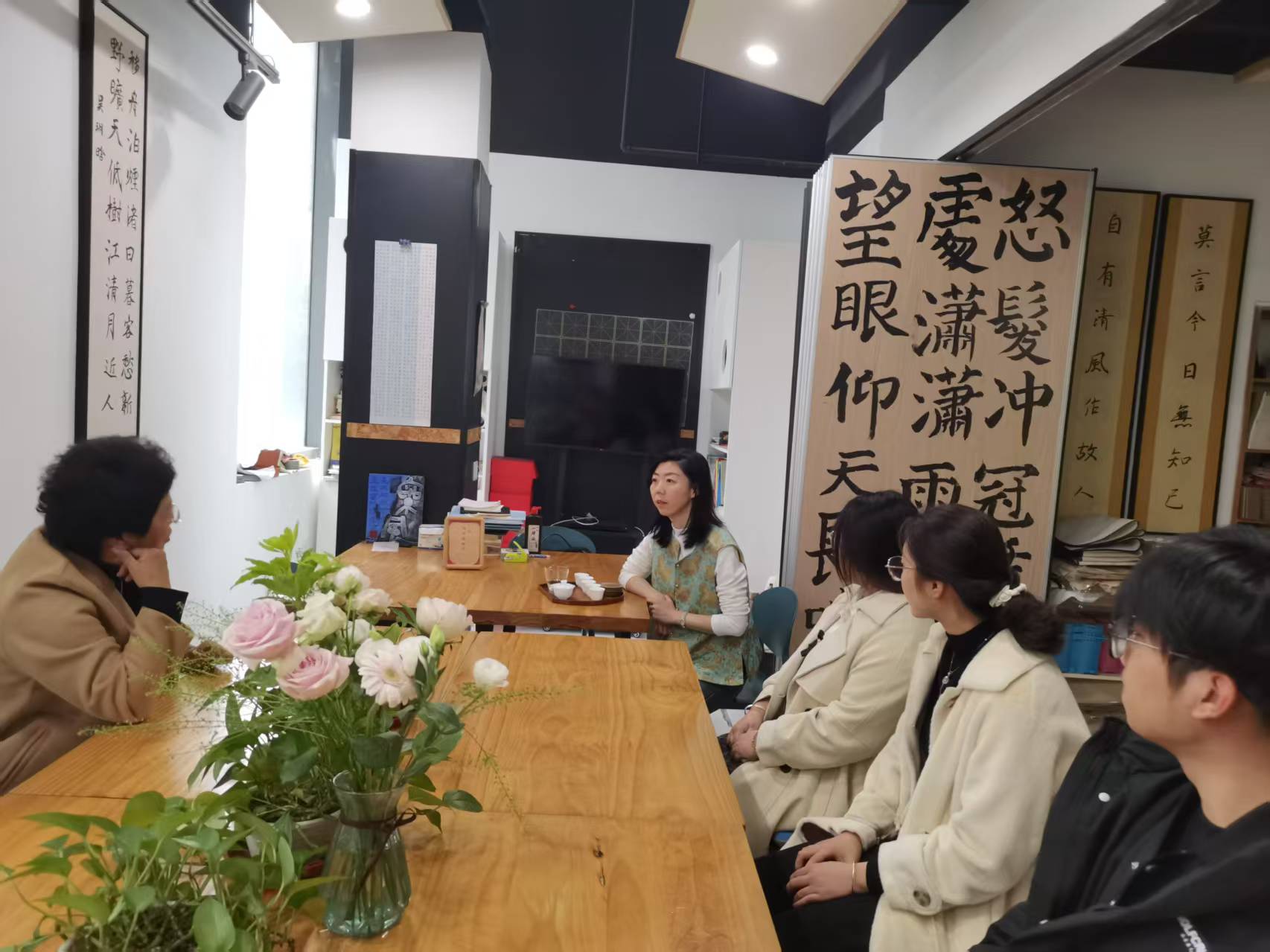 为深化校友与母校的情感联结,凝聚校友力量和发展共识,10月30日,色情网 党委副书记孙研红一行,前往青岛自家书事有限公司,拜访了色情网 书法系2006级校友宋玉洁。