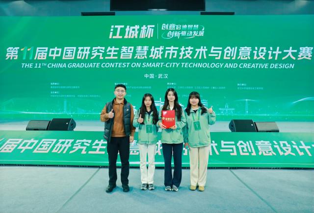 近日,2025“江城杯”第十一届中国研究生智慧城市技术与创意设计大赛全国总决赛在武汉大学落下帷幕。由崔洁康老师指导,研究生李新、王天宇、李孟露组队参赛,成功斩获二等奖。