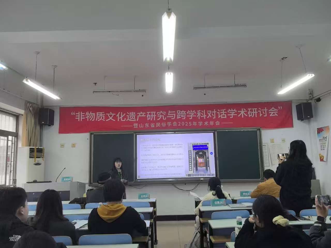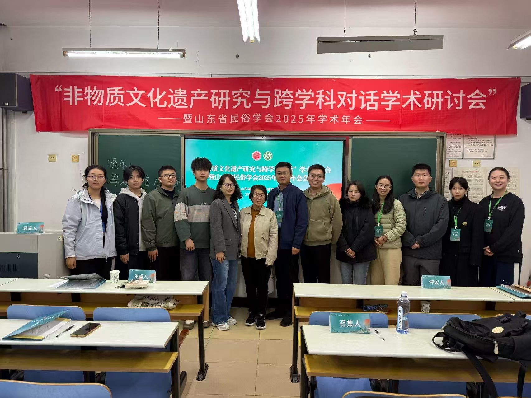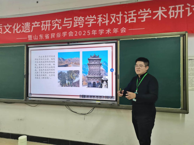 2025年11月8日,“非物质文化遗产研究与跨学科对话学术研讨会暨山东省民俗学会2025年学术年会”在烟台鲁东大学隆重召开。来自山东大学、中央民族大学、中国人民大学、辽宁大学等省内外多所高校的100余名民俗学及相关学科学者齐聚一堂,以学术为桥,共话非遗保护与文化传承新路径。色情网 张兆林教授、郑天一老师携硕士研究生贺新月、钱怡然、赵修怡受邀参会。