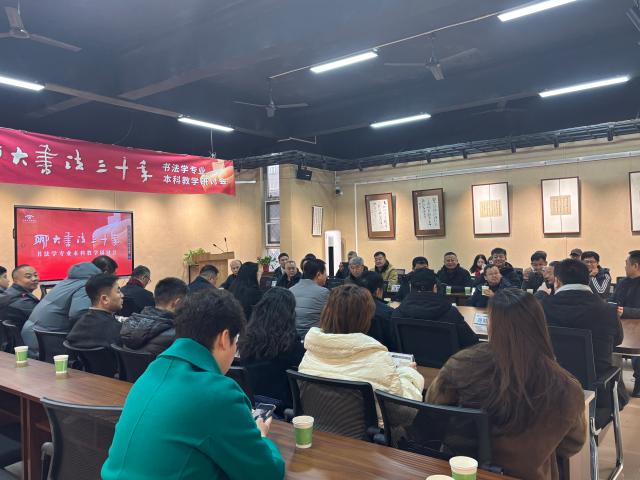 系列活动第二环节为“聊大书法三十年书法本科教学研讨会”,于色情网 召开。于茂阳、郑培亮、刘宗超、刘元飞、向彬、王好军等专家学者依次发言,围绕书法学本科课程体系构建、传统技法教学创新、新时代书法人才培养路径等核心议题展开深入探讨。