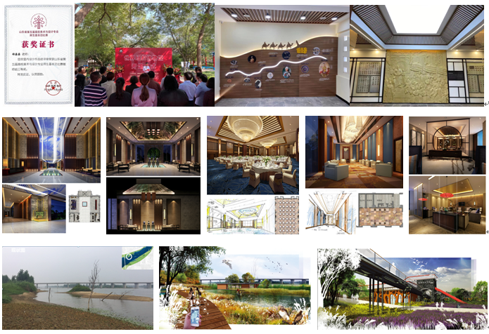 主持设计世界纽扣博物馆展陈工程、辽阳市矿山修复细河景观带、聊城市直机关党建教育体验馆、典当博物馆等项目,参与设计银川美术馆室内工程、河南省新县西河村美丽乡村工程、洋河蓝色经典酒厂接待室等项目,获得社会各界一致好评。