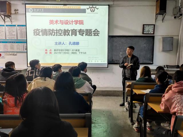 学院辅导员孔德滕主要开展疫情防控教育,着重强调本轮新冠疫情防控严峻形势下,要切实做好全院学生个人防护,进一步强化正确的疫情防控思想观念,在积极配合并做好疫情防控工作的同时,做好各班级信息的统计与上报工作,做到不漏报、不瞒报、不晚报,同时要求全体学生干部要带头遵守学校各项疫情防控制度,切实做好全院学生防控工作。