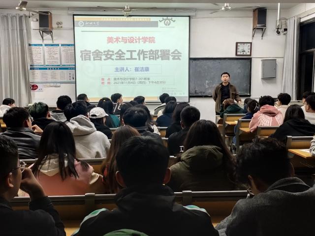 学院辅导员崔洁康就宿舍安全进行安排,首先通报了学生宿舍安全检查情况,就大功率及违章电器、使用明火、私拉乱接电线等安全隐患进行了详细讲解,并要求各班级全体学生干部要带头遵守宿舍规章制度,定期做好本班级宿舍安全检查与整改工作。