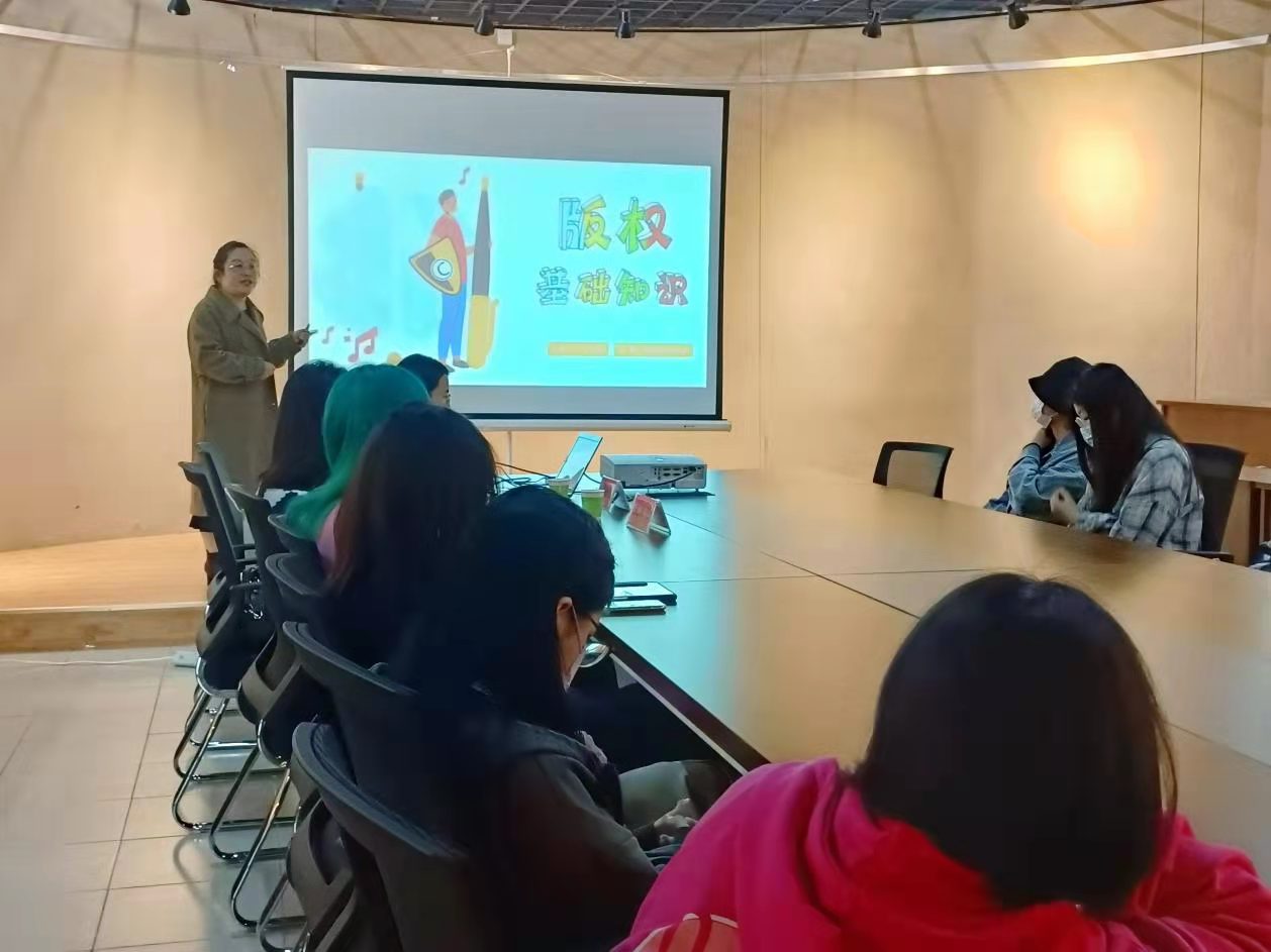 王秋铃首先从版权概念进行普及,详细讲解了知识产权的意义、内容范围、产权权益,带领同学们初步认识和了解版权;其次,重点围绕与学生切身相关的著作权展开介绍,鼓励同学们在创作和宣传自身作品的同时,注意保护合法权益和知识产权。进一步加深了与会同学对著作权重要性和作品登记作用、意义的理解;然后,王秋铃结合社会上热门设计和美术作品的侵权案例,使同学们认识到版权就在身边,激发了大家学习版权知识的热情,引导树立尊重知识、崇尚创新、诚信守法、公平竞争的版权保护意识。最后,根据与会同学提出的问题,主讲人现场进行答疑解惑,同学们纷纷表示,通过此次深入浅出的宣讲,丰富了自身版权保护知识,提高了作品使用登记意识。