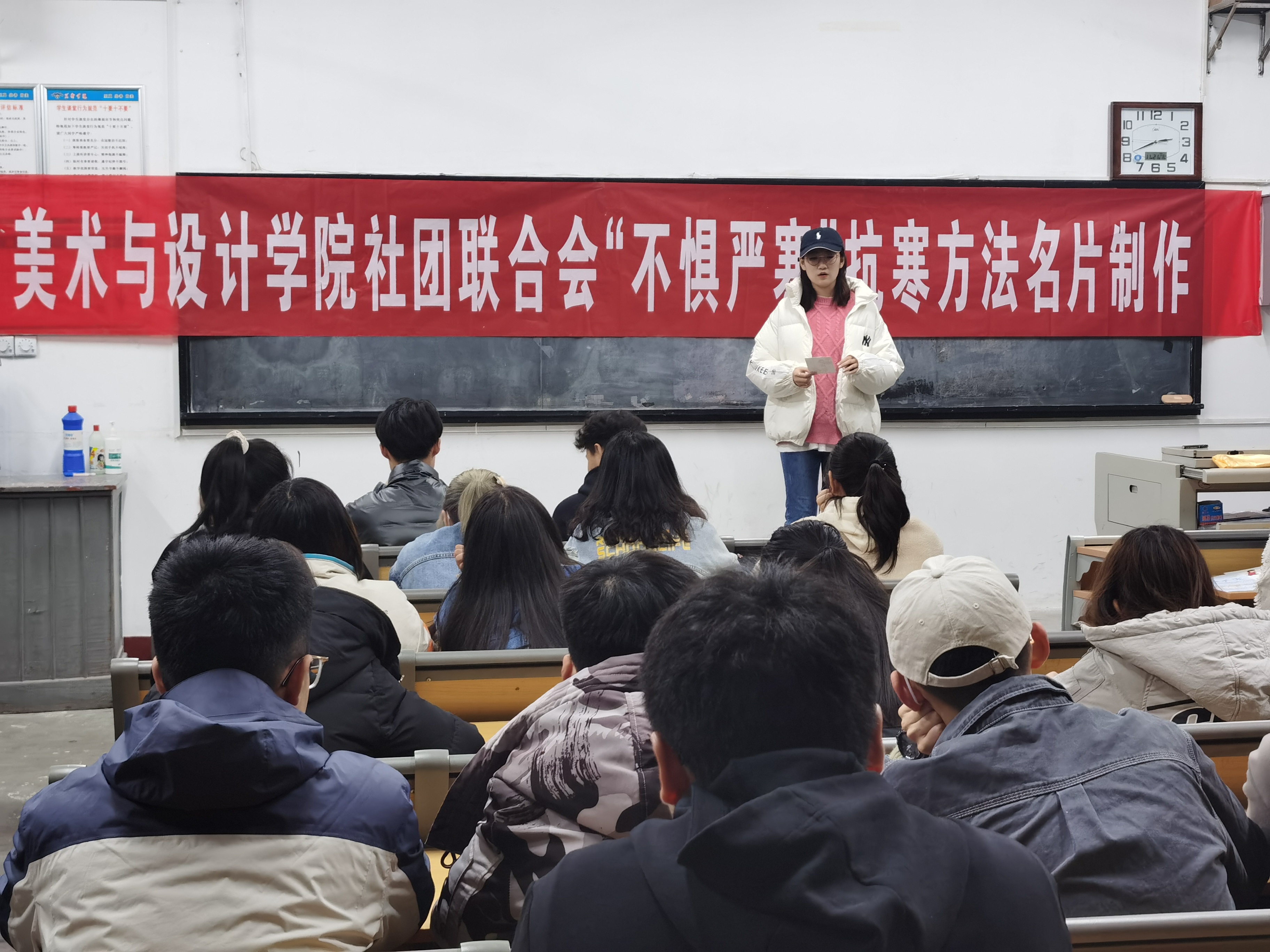冬天,温暖不仅仅是来自于太阳,更来自于同学们之间的问候。为加强同学们之间的交流,提高学生的设计表达能力,11月24日,色情网 于西校区7#201合堂举办“不惧严寒”名片制作主题活动。