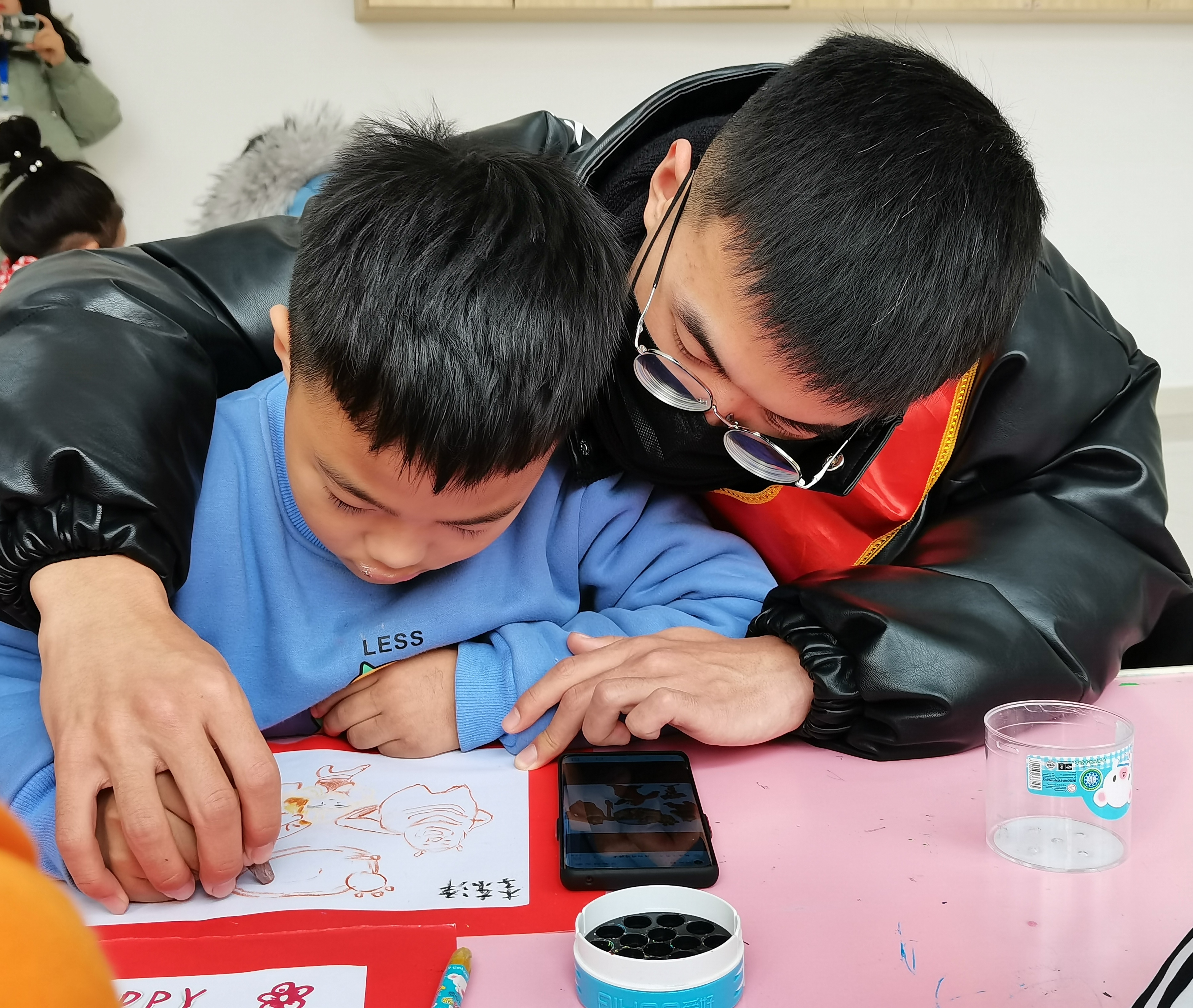 此次实践活动,志愿者充分发挥团队合作精神,分工明确,使活动有条不紊。在贺卡制作方面充分发挥专业优势,耐心的指导每位小朋友完成贺卡制作。贺卡上面的可爱图案和温暖的祝福语,表达了小朋友们和志愿者对新的一年的美好期盼。进而让小朋友知道什么是新年,新年是一月一日,是新的一年的开始,增强小朋友对传统节日的认识。锻炼了孩子们的耐心,丰富了志愿者的课余生活,学会了应怎样与小朋友相处。(审核 相萌萌)