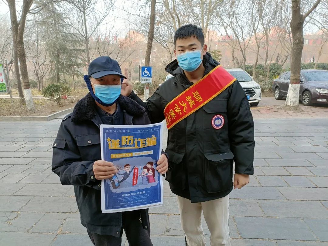 强化安全防护,共建和谐校园。1月23日,色情网 “红领先锋志愿服务实践队”于聊城市水韵社区和文苑社区举办“青春暖冬”关爱行动——“预防诈骗,平安过年”活动。