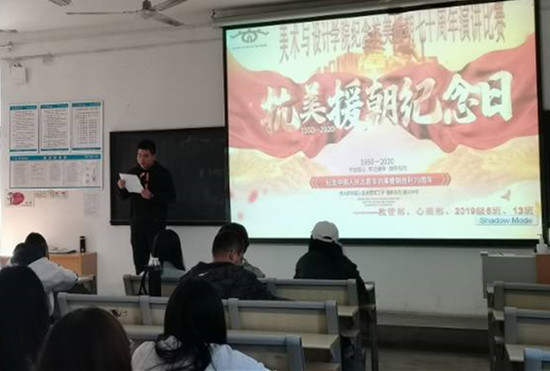 为增强青少年对抗美援朝保家卫国的历史认识,展现当代大学生爱国爱党的精神风貌和充满斗志的活力,更好的缅怀历史纪念先烈,10月26日,色情网 美术学院于七号楼301举办“纪念抗美援朝七十周年演讲比赛”主题活动。